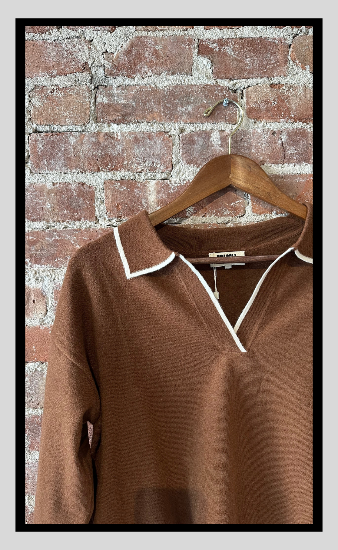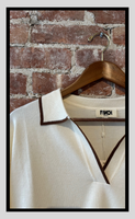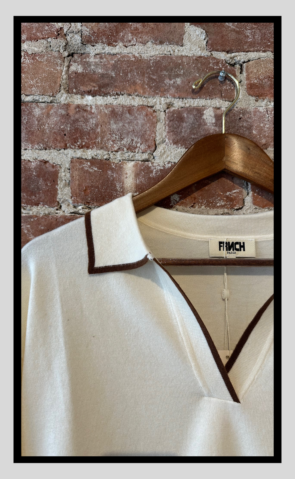 A modern ode to Parisian chic — this collared knit balances simplicity with subtle sophistication. The fluid drape, soft hand-feel, and refined contrast edging create a look that is both effortless and distinguished. Available in two timeless nuances: Crème and Marron Glacé.
