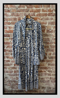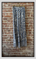 Elevate your wardrobe with these statement navy and ivory printed wide-leg pants. Featuring an intricate pattern with a bold yet elegant aesthetic, they offer a relaxed fit for effortless movement. The elastic waistband ensures comfort, making them perfect for both casual days and dressed-up occasions. Pair them with a neutral top for a balanced and sophisticated look