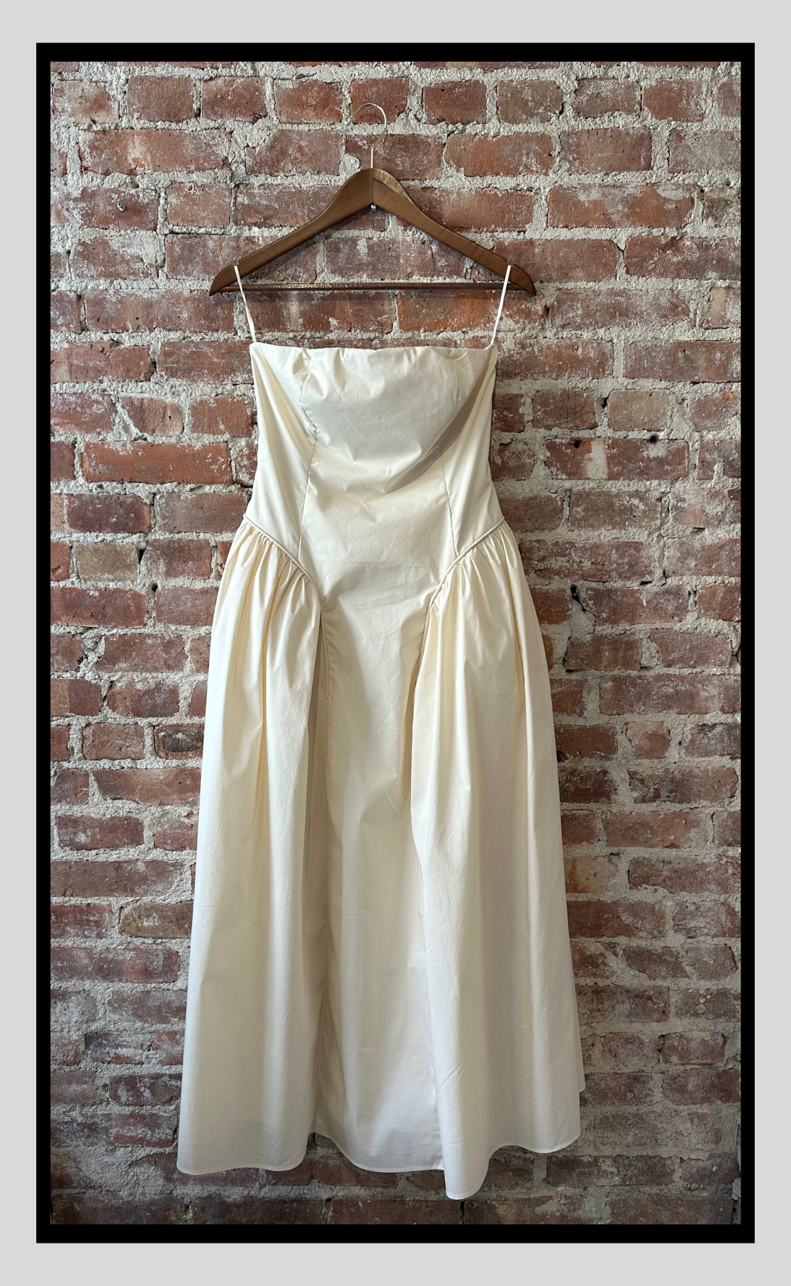Elegant and effortlessly chic, this strapless midi dress is a modern classic. The soft draping and voluminous skirt create a romantic silhouette, perfect for any occasion that calls for understated glamour.